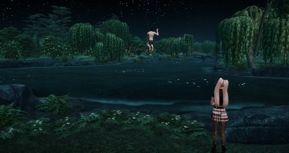 Hacía calor y a esas horas no había nadie por allí, así que lo haría, claro. Se quita todo quedándose en ropa interior y se sube al árbol para tirarse desde la rama.